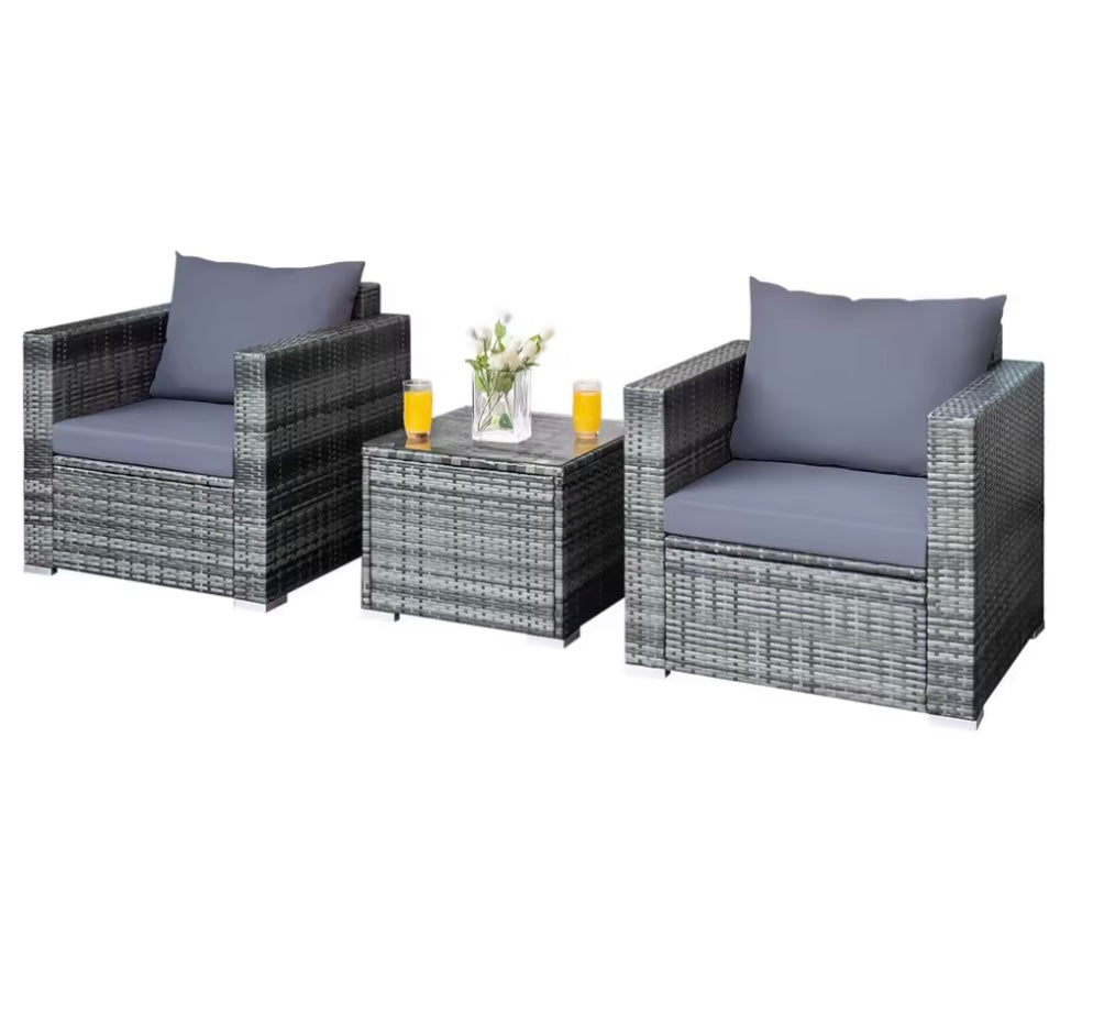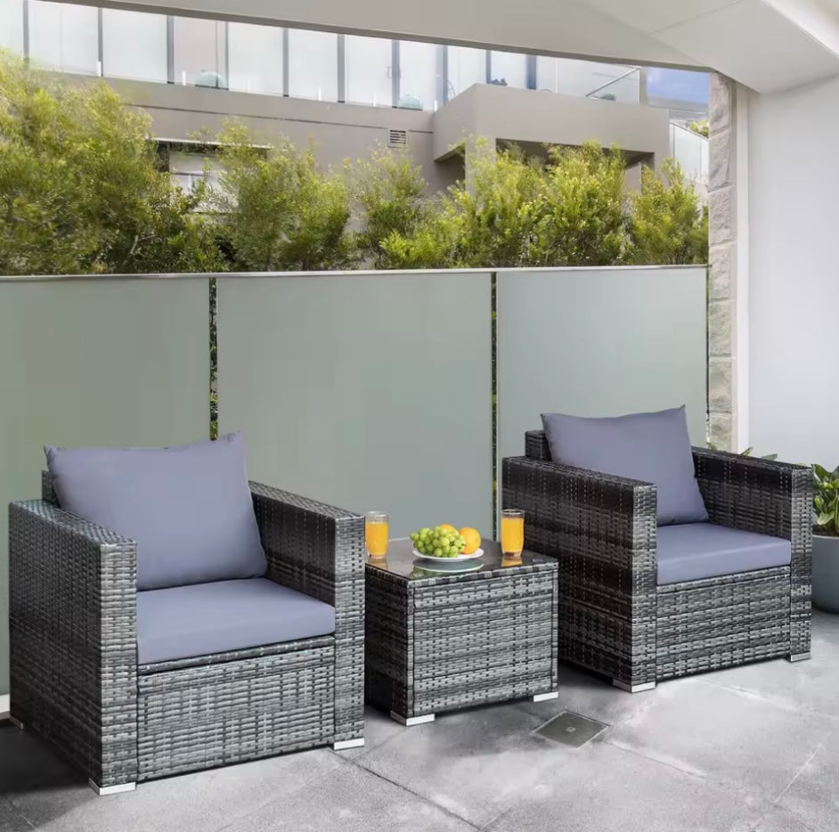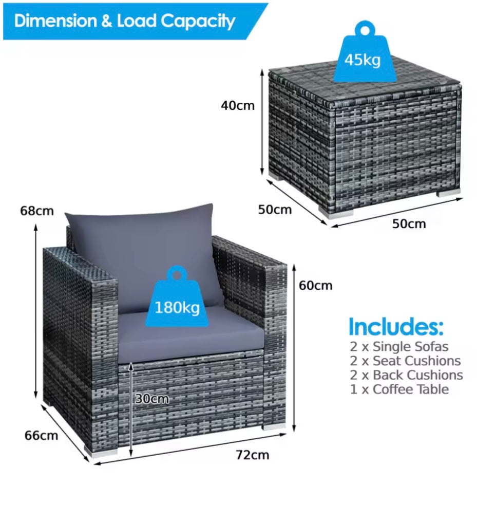 Material: Steel, Rattan, Tempered Glass, Sponge
